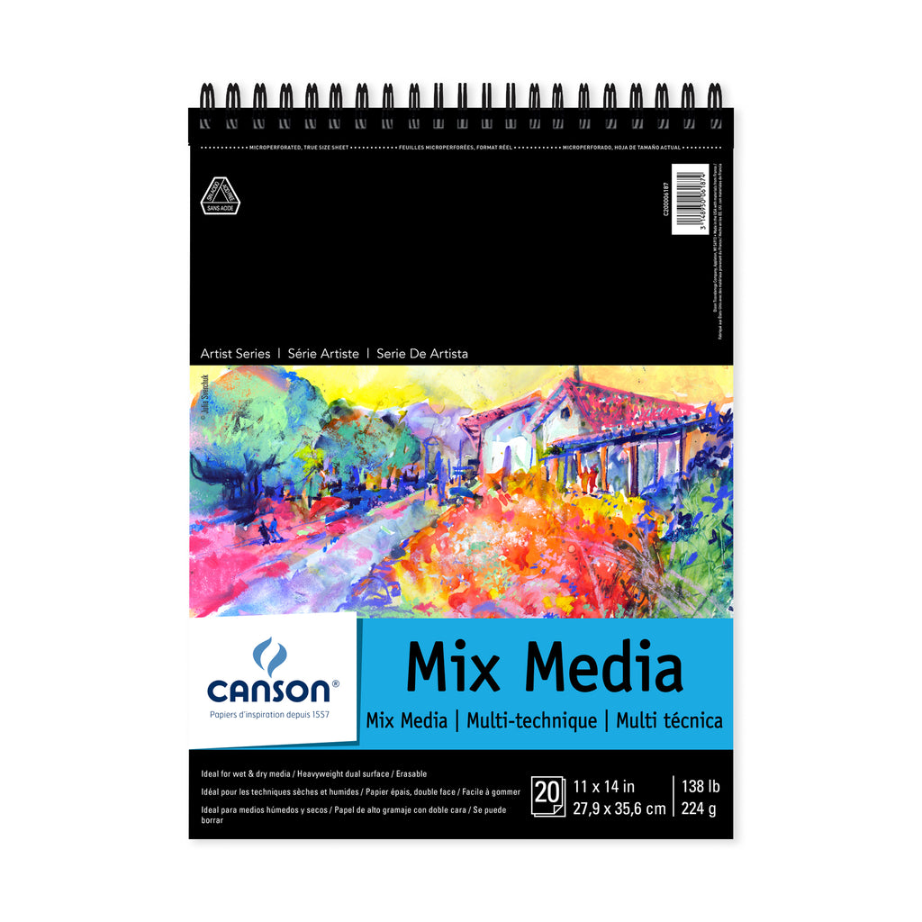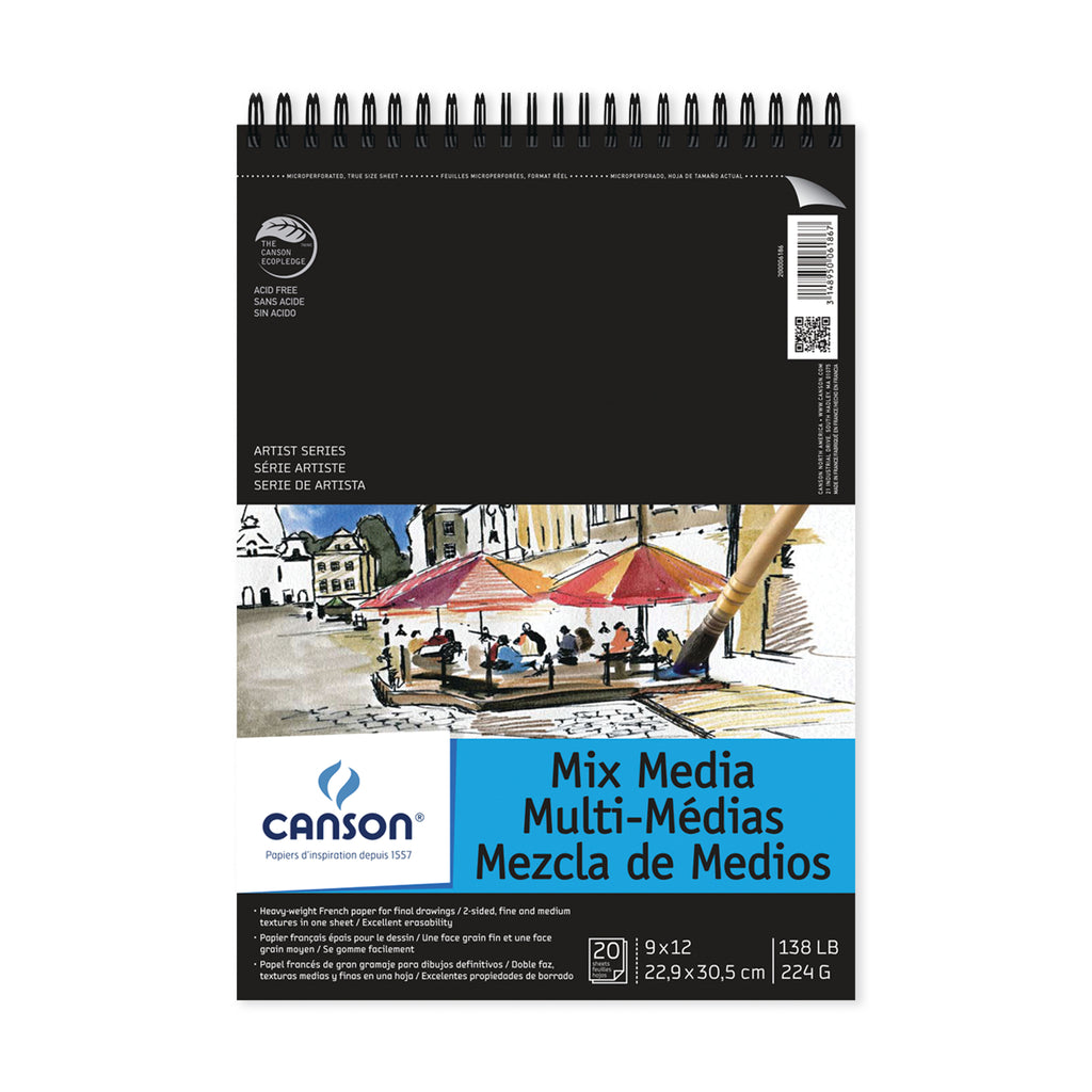 Canson Mix Media Pads feature heavyweight, 138lb paper for final art. Each sheet is double-sided with a fine and medium texture and offers excellent erasability. Acid and lignin-free. Ideal for dry media, wet multi-media techniques, markers, pen and ink, and collage. Spiral-bound with 20 sheets available in two sizes. Made in France.