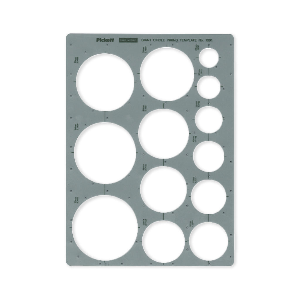 Circle templates are available in many styles to suite your drafting needs. Styles include Circle Master, Small Circles, Giant Circles, and True Metric Circles. Precision-engraved apertures ensure single-stroke accuracy. Templates come in a smoke grey color with a matte, non-glare finish. Templates feature ink risers to facilitate clean, smudge-free inking and easy pick up and repositioning. Chartpak templates are scratch-resistant and distortion-free. For best results, use with technical pen or pencil. Contains 13 metric circles ranging from 25mm to 85mm in diameter with printed centering lines.