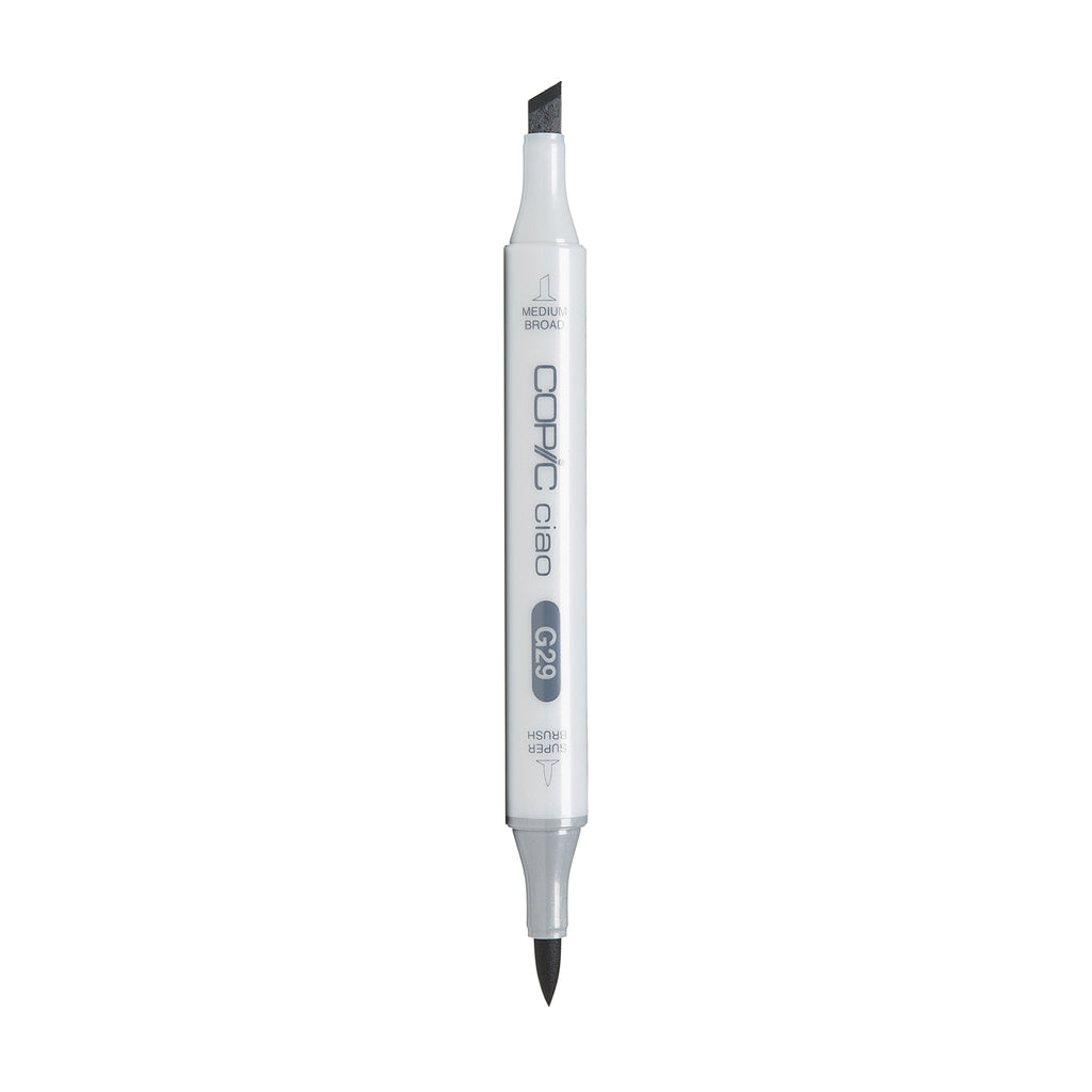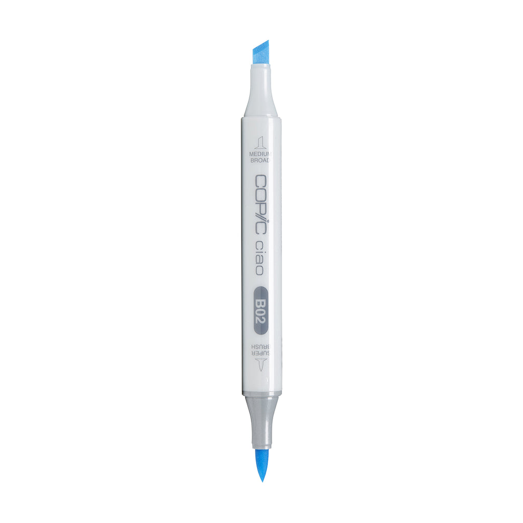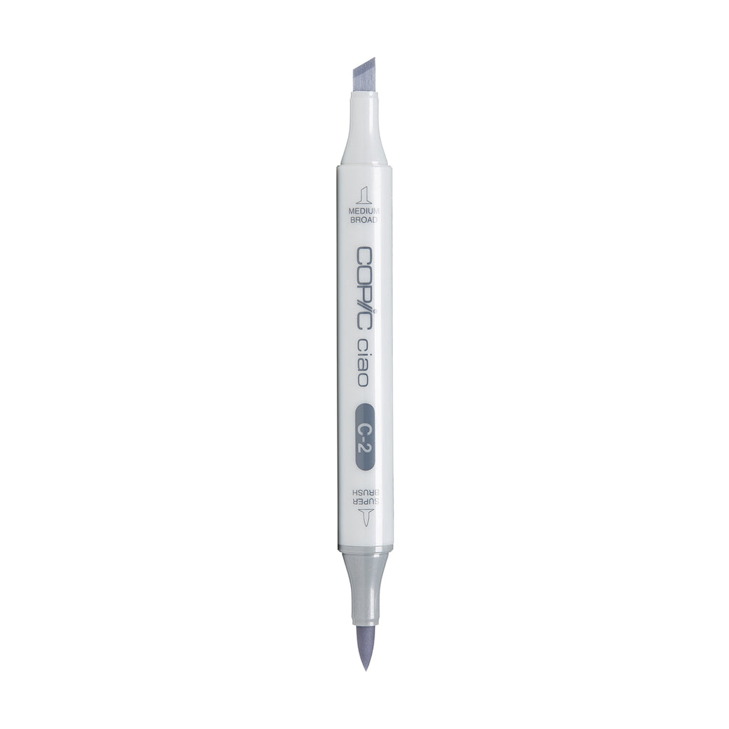 Ciao markers feature the same tips as Copic Sketch Markers: a super brush nib and a versatile medium-broad nib. Ciao markers also contain the same fast drying, permanent and acid-free inks that are safe to use with photocopies. Copic ink blends extremely well so streaking and overlap lines are minimal. The round, durable barrel is comfortable to use, making these markers a favourite with manga artists. Conveniently refillable with Copic Ink Refills.