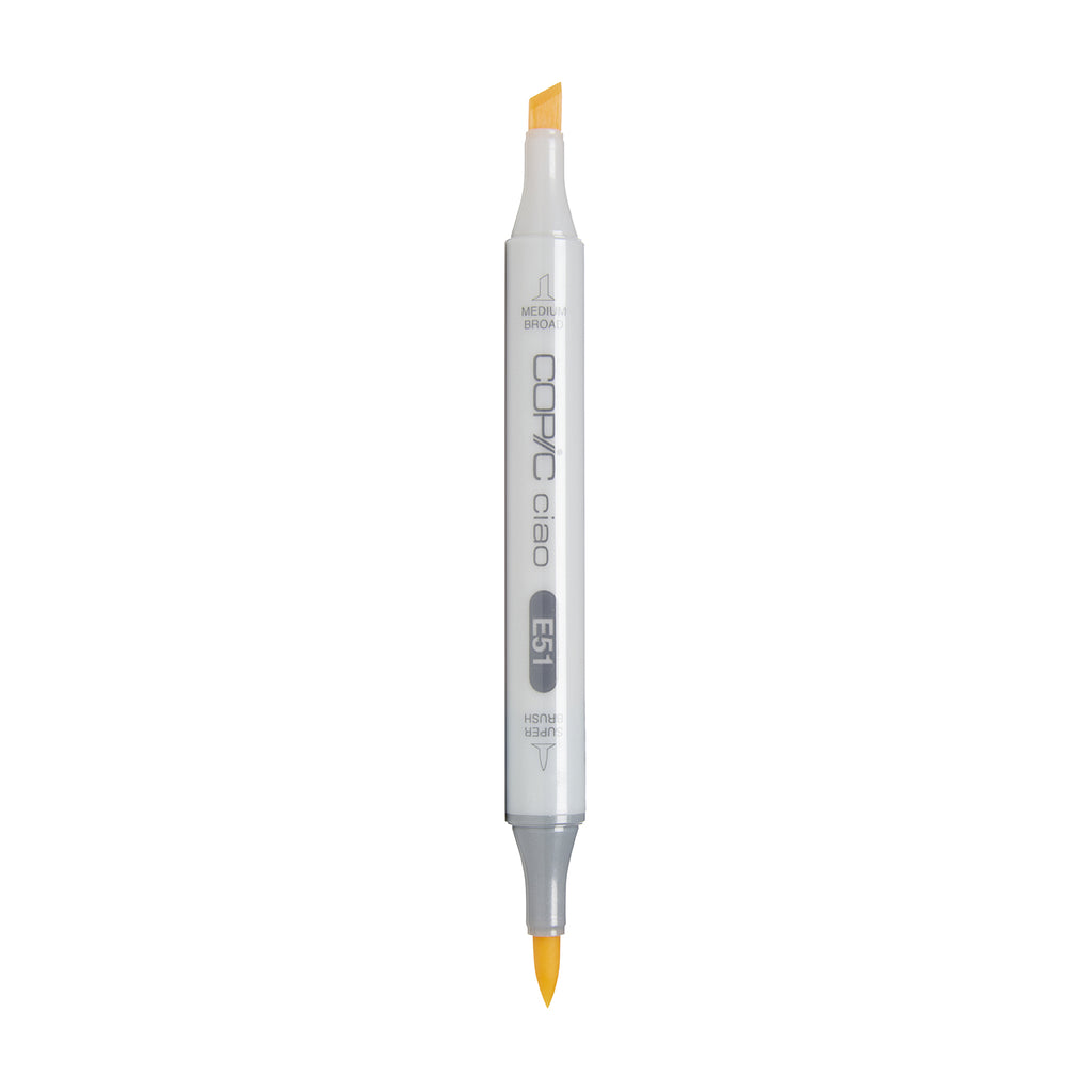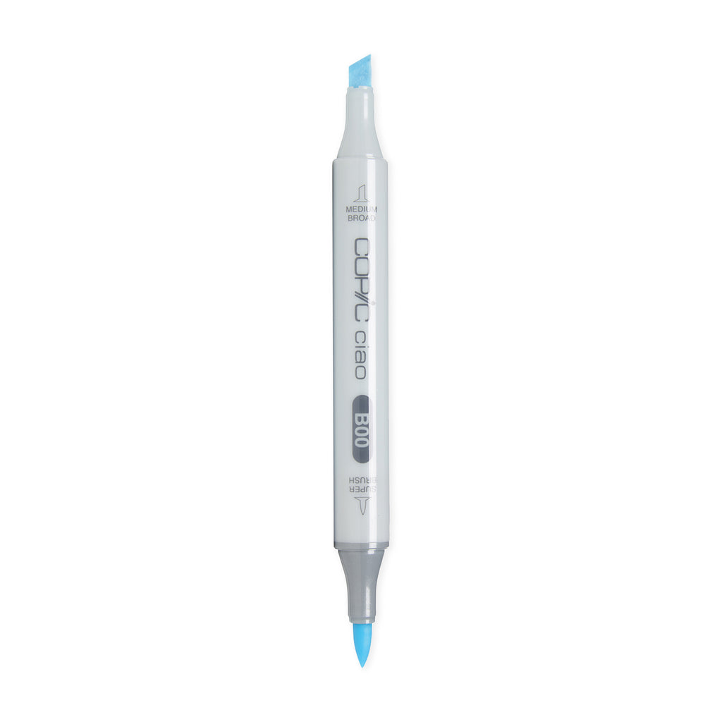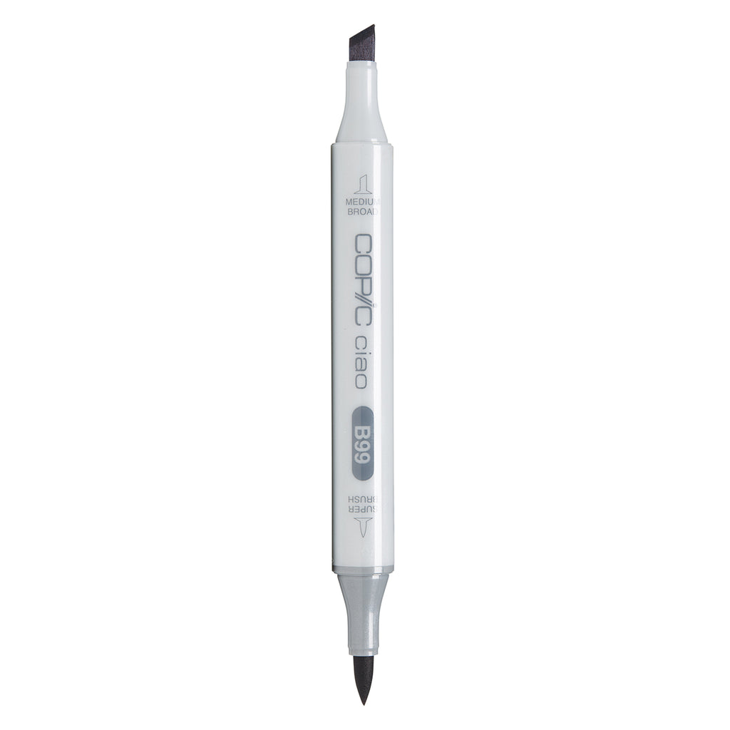 Ciao markers feature the same tips as Copic Sketch Markers: a super brush nib and a versatile medium-broad nib. Ciao markers also contain the same fast drying, permanent and acid-free inks that are safe to use with photocopies. Copic ink blends extremely well so streaking and overlap lines are minimal. The round, durable barrel is comfortable to use, making these markers a favourite with manga artists. Conveniently refillable with Copic Ink Refills.