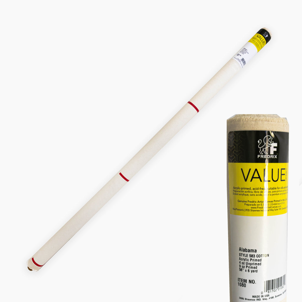 A light-weight 100% cotton duck with a pronounced texture. It is woven to strict specifications. Creative Series cotton canvas is primed just north of Atlanta, Georgia, with an acid-free acrylic titanium gesso. Designed for oils, acrylics, water soluble oils, paint markers, permanent markers, spray paints and alkyds. 56" wide, 4 oz. raw, 9 oz. primed.