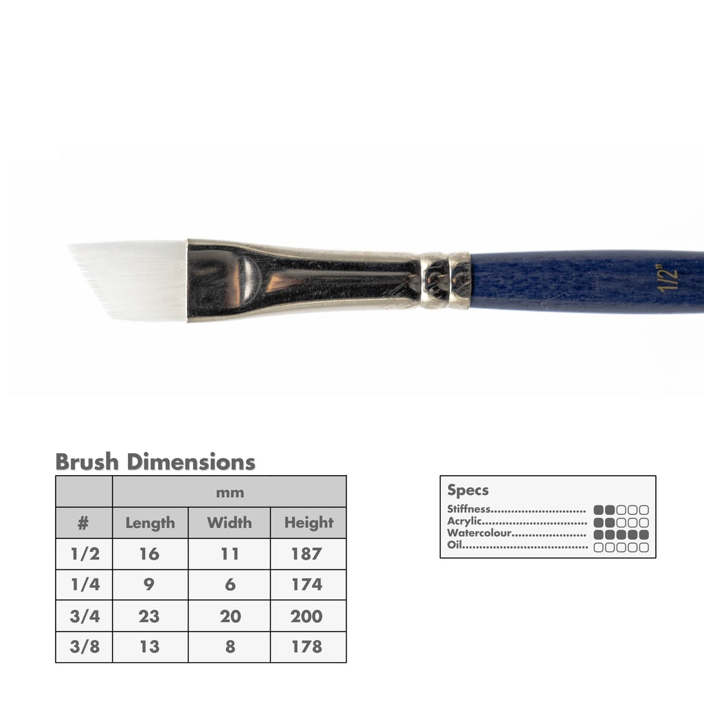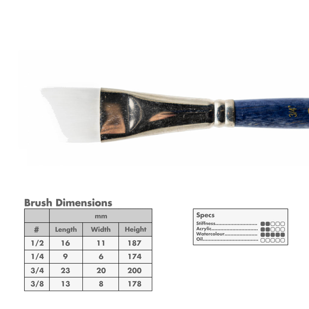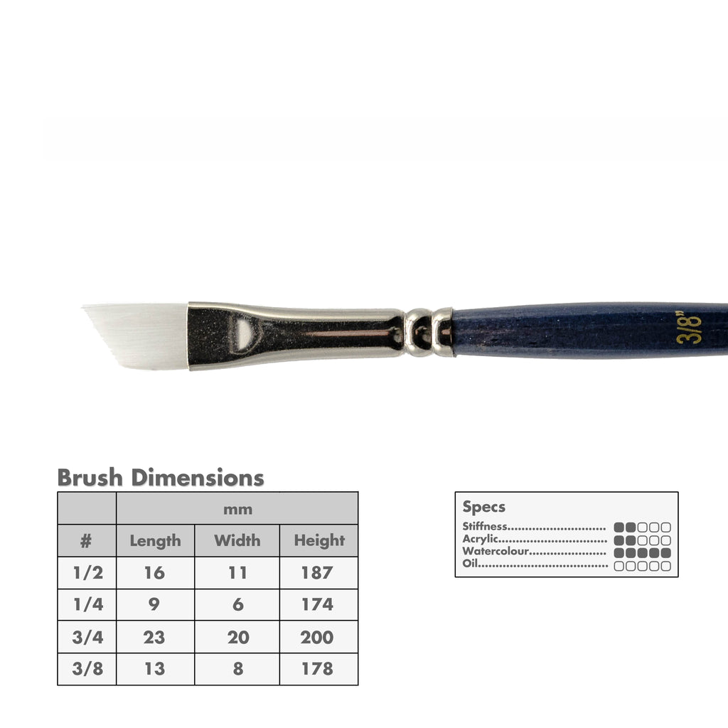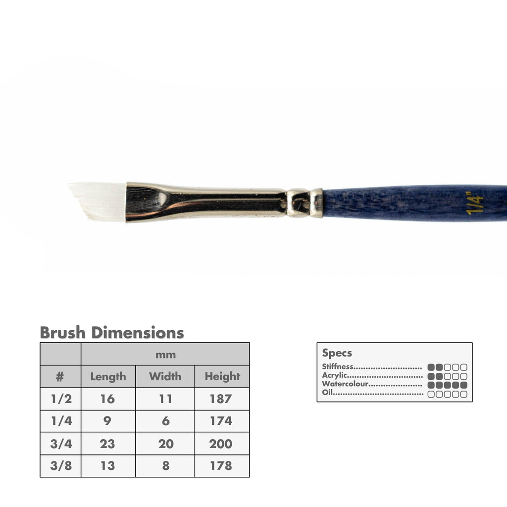 For Watercolour and Acrylic: A short-handled angular, white synthetic, brush designed for use with watercolour or shading.