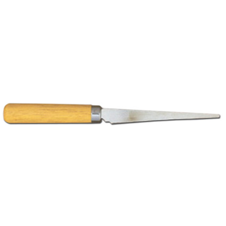 This Jack Richeson Fettling Knife has medium flexibility and an extra-sharp, beveled edge! Use to trim and shape clay, plaster or Styrofoam. 8-1/8" knife has a metal ferrule and wood handle. Blade is 4-1/4".