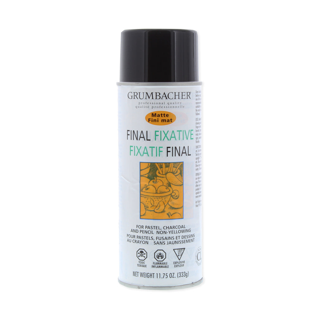 Used to fix and protect dry media such as pastels, charcoal, and graphite. Always test on a scrap surface with a similar media application as your final work before use. Use in a well ventilated area with temps above 65 degrees Fahrenheit and relative humidity below 65%. Follow safety instructions on can. Fixatives may darken media depending on the media, the amount of media, and the substrate. Do not over-apply as it will cause a more dramatic color shift and may cause pastels to dissolve. Shake 1-2 minutes before use. Clear the nozzle by spraying a few blasts onto scrap paper, turn can upside down and spray until only gas comes out. Set work vertically and spray 12 inches from the artwork. Overlap spray about 1/2 inch on each pass with light coats. Turn artwork 90 degrees and wait 5-7 minutes between each coat. Allow to dry completely before touching.