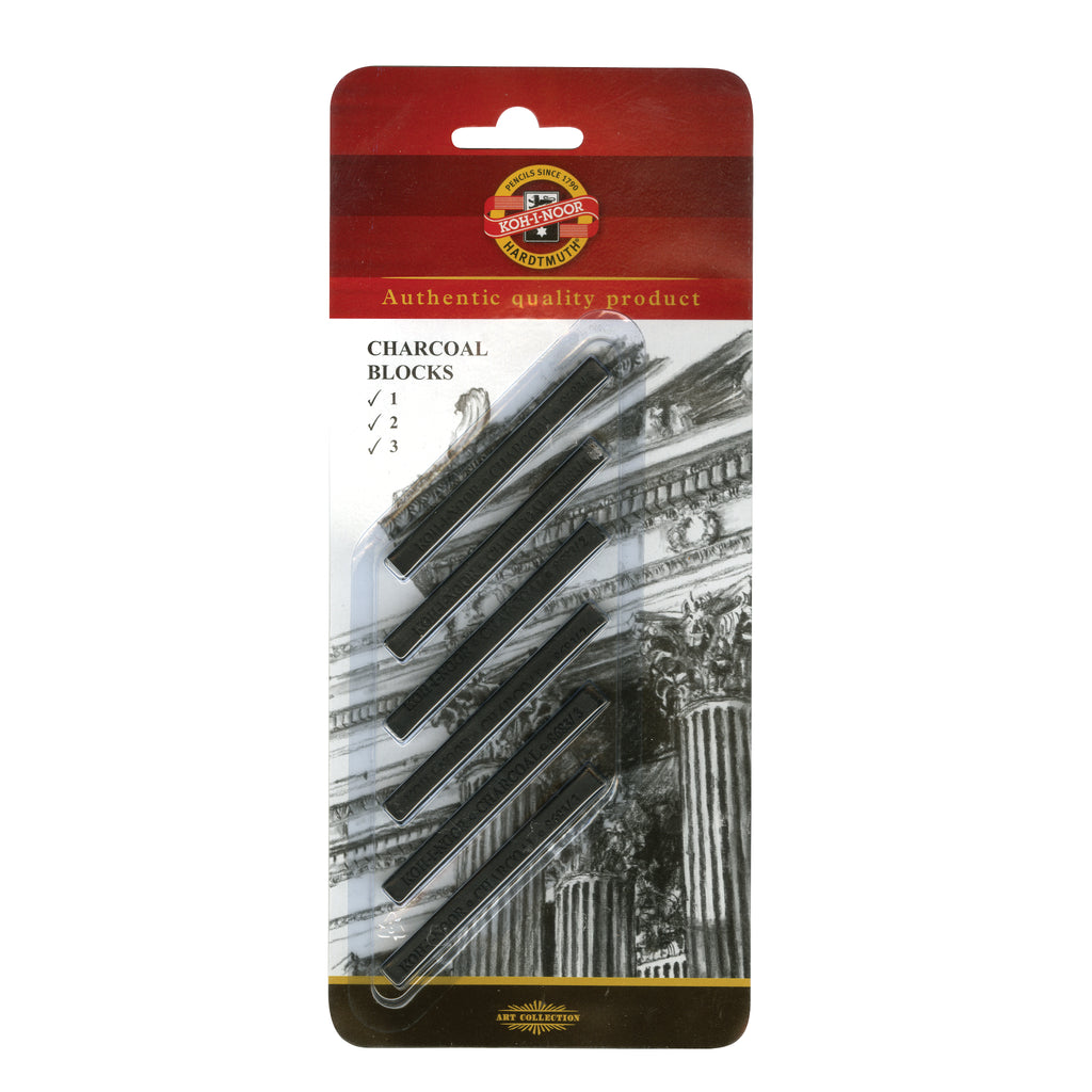 Charcoal blocks can be shaped with a sanding block, The shavings can be used for smudging, providing the artist with a range of tonal values. These extra smooth, high quality blocks are excellent for drawing and sketching. The charcoal blocks produce a dense, velvety black, making them ideal for detail work or broad coverage on newsprint, bristol, coloured paper or heavily textured surfaces. Includes two each of #1 (soft), #2 (medium), and #3 (hard).