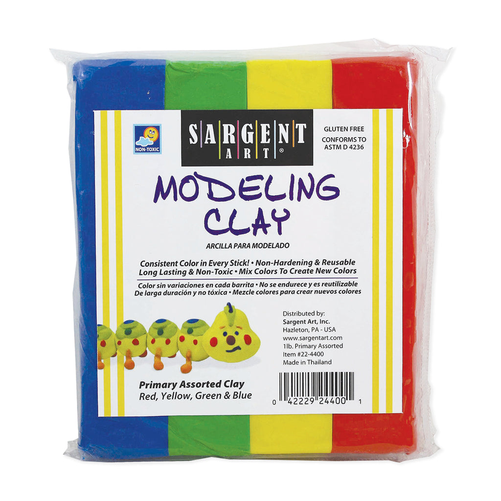 Plasticine blocks are a reliable and economical oil based modeling material with a variety of creative uses. It's extreme pliability makes it a mainstay for 3-D animators, mould-makers and school children. The non-drying and non-toxic colours can be mixed to produce a variety of new hues. Contains an assortment of 1lb non-hardening clay blocks in four colours; red, green, blue & yellow. For ages 3+.