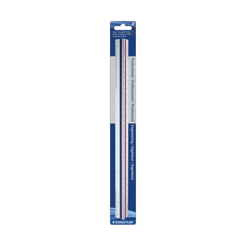 Mars drafting scales are manufactured from specially selected materials to ensure dimensional stability and accuracy. They are durable, lightweight and have long-lasting graduations. These extremely dependable drafting tools have especially long-lasting graduation imprints. The beveled edges always guarantee best results, no matter whether you use technical pens, fineline pencils, or any other drawing instrument. Scales come in a white solid plastic, with die-engraved graduations and color-coded grooves. 12" or 300 mm, available in several inch and metric divisions.