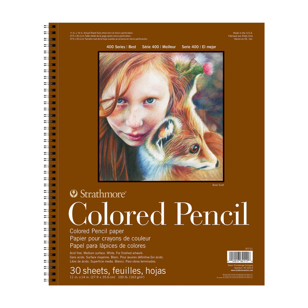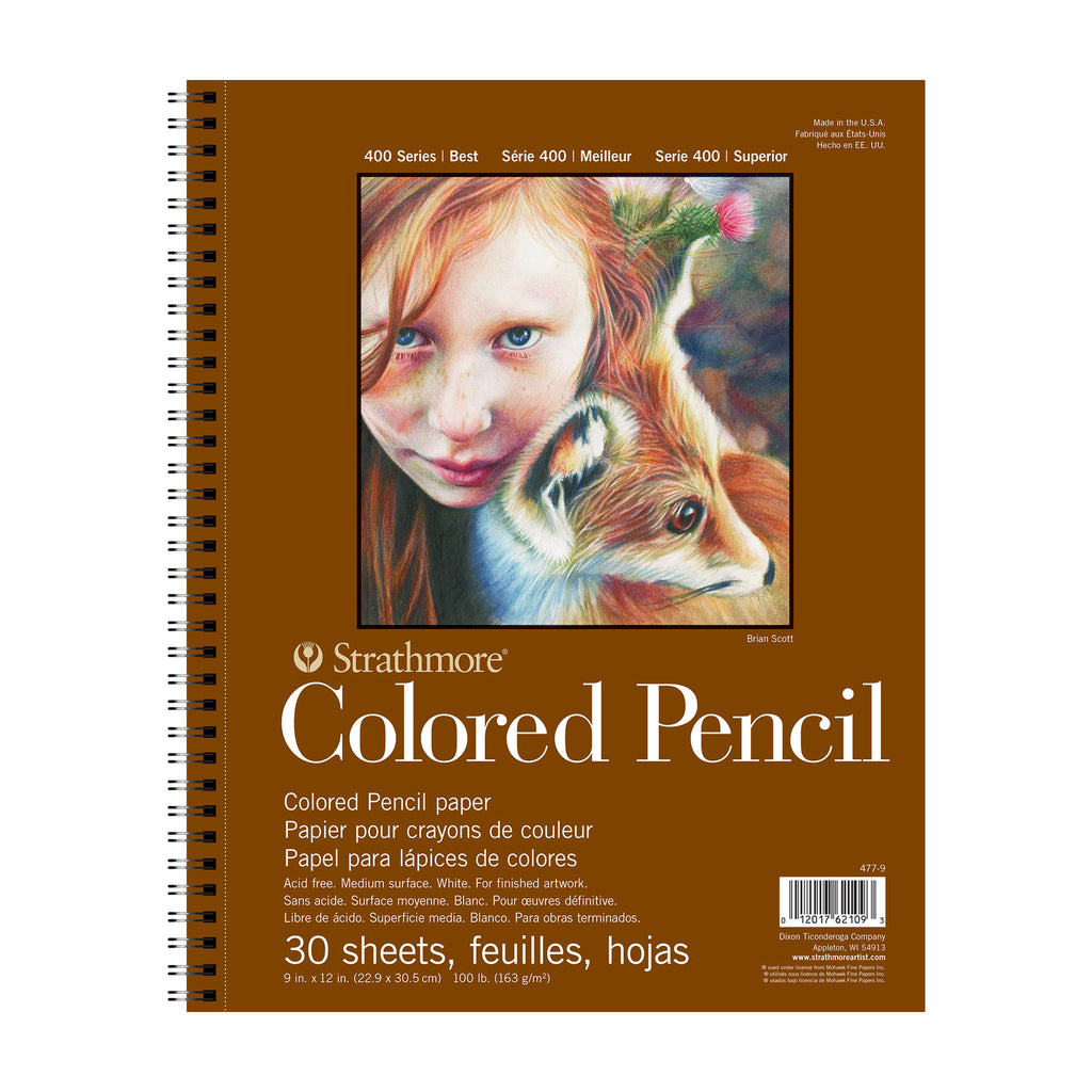 This Strathmore 400 series coloured pencil paper provides a clean white, toothy surface that is ideal for coloured pencil techniques. The medium surface, 100lb paper is also excellent for graphite, charcoal and sketching sticks. Achieve smooth, even coverage with its durable surface that stands up to repeated erasures & reworking. Each wire bound pad contains 30 micro-perforated acid-free sheets.