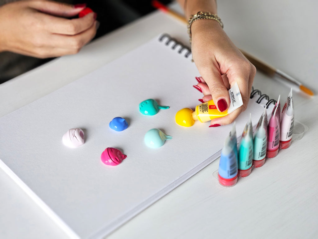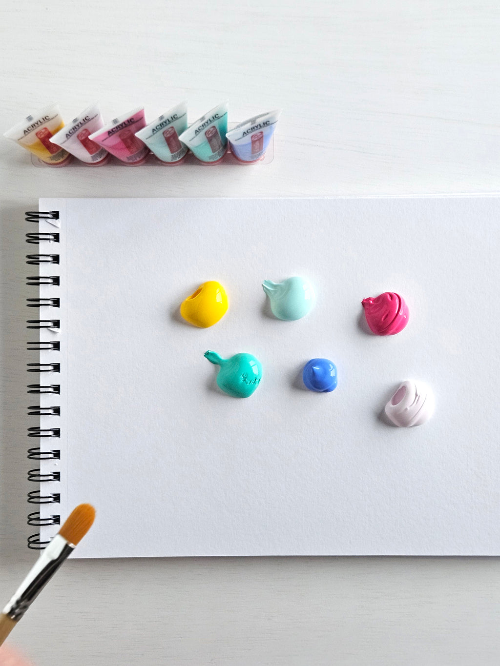 Set Contains: Azo Yellow Medium, Pastel Rose, Quinacridone Rose, King’s Blue, Mint Green, Phthalo Green Light.