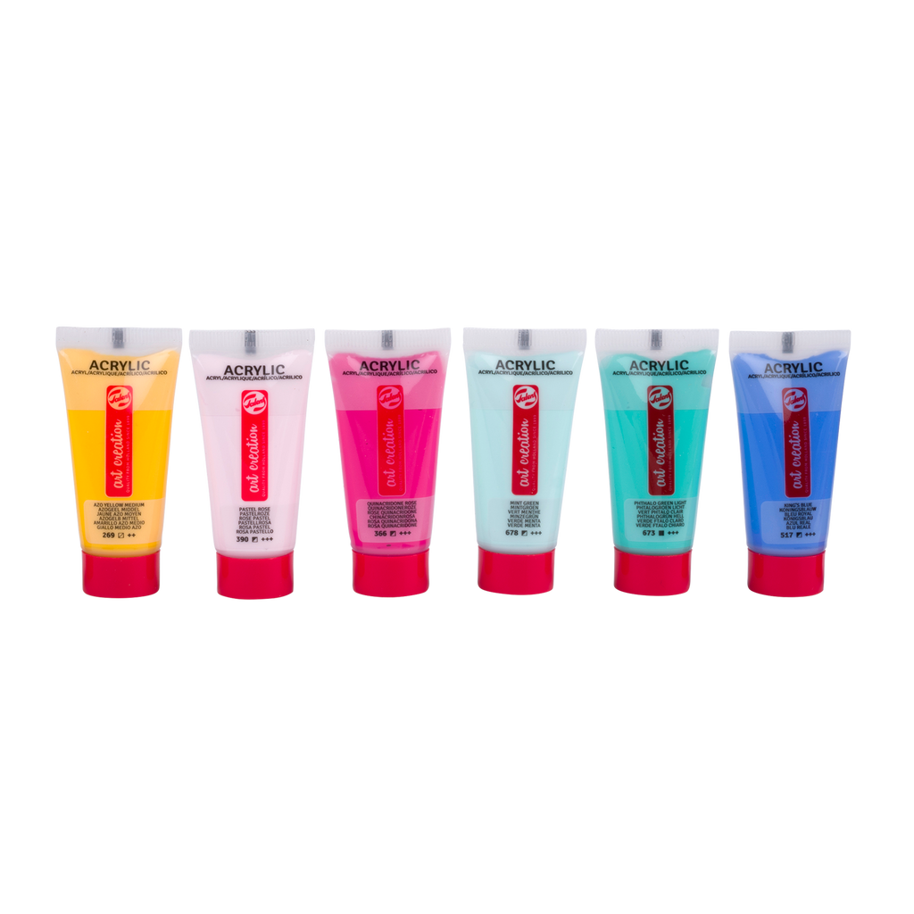 Talens Art Creation is a reliable quality acrylic paint which is 100% based on acrylic resin. The paint is pasty, has a silky sheen when dry and can be painted over quickly. Talens Art Creation can be used both straight from the tube and thinned with water. The paint is waterproof when dry. Due to it's adhesive properties this paint allows you to work on any somewhat absorbent ground that is free of grease and dust, such as canvas and paper, as well as plaster, board, wood, stone and cement.