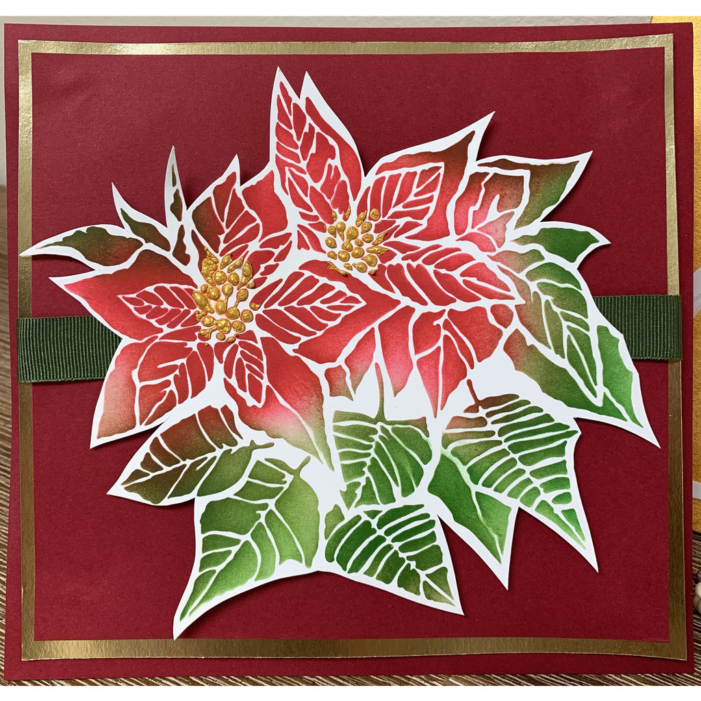 Just in time for the Holidays! The Poinsettia stencil designed by Carmen Medlin is perfect for using in collage, gel plate printing, on fabric and paper to create your own unique holiday décor. These sturdy stencils can be used with all paints including, acrylic, ink, dimensional pastes and mediums, sprays and pens.