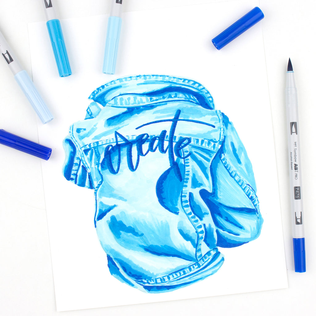 Colours included: 555 Ultramarine, 535 Cobalt Blue, 493 Reflex Blue, 443 Turquoise, 452 Process Blue, 451 Sky Blue.