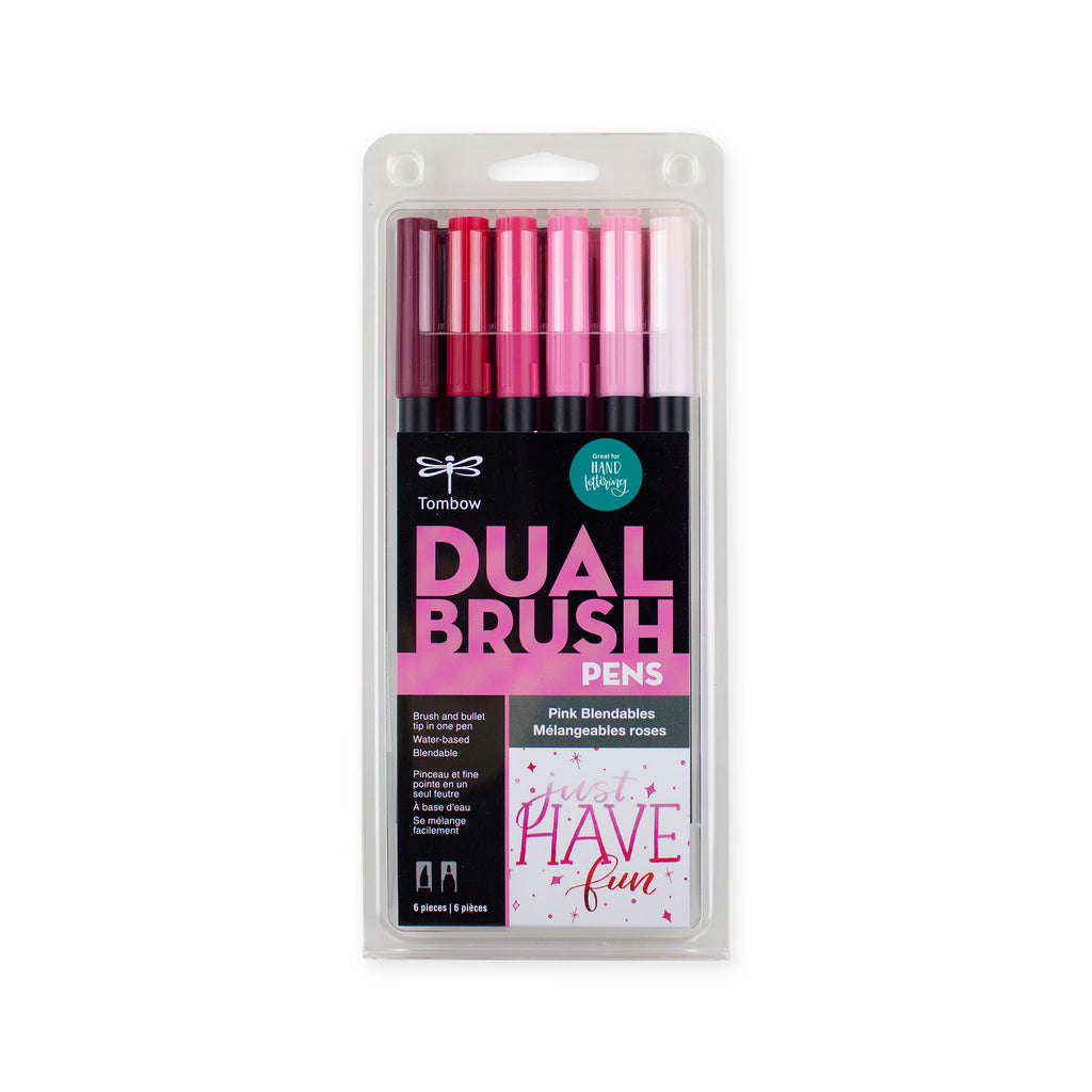 Set of 6 Dual Brush Pen colours. Flexible brush tip and fine tip in one marker. Brush tip works like a paintbrush to create fine, medium or bold strokes; fine tip gives consistent lines. Dual Brush Pens are ideal for artists and crafters. The water-based ink is blendable and the resilient nylon brush retains its point stroke after stroke. Ideal for colouring, fine art, illustrations, doodling, journaling, hand lettering and more. Water-based, Blendable, Acid-free, odourless. Tips self-clean after blending. For best results, use a smooth, non-textured paper.