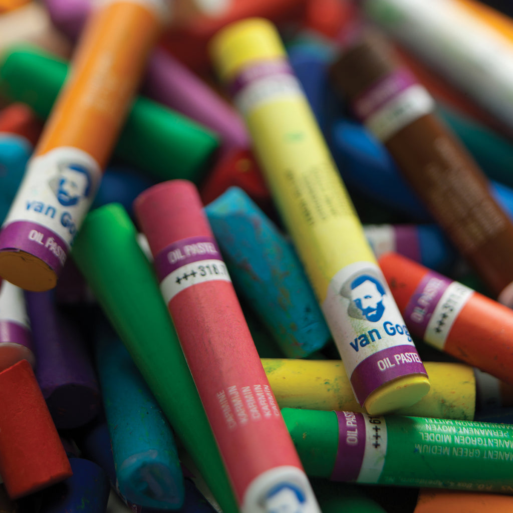 In partnership with The National Gallery in London, this beautiful set of oil pastels features cover art from Vincent Van Gogh's 1890 painting titled "Long Grass with Butterflies". These Van Gogh oil pastels are briliant colours made with pure pigments, mineral oils, and wax binders for a remarkably soft and smooth laydown with no dust. Wonderful tinting strength and easy colour transfer. Suitable on various grounds.