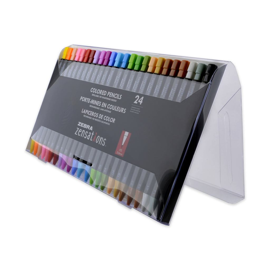 Easy to hold, colourful and bold! Zensations Mechanical Colored Pencils provide smooth, rich, vibrant colors that blend easily for shading and color mixtures. With a triangular barrel that is easy to hold, it provides excellent control while coloring or sketching. The 2.0mm lead is durable and long lasting. Never needs sharpening - Try them in your bullet journal - Triangular barrel prevents rolling - AP Certified Non-Toxic - Available Point size: 2.0mm.
